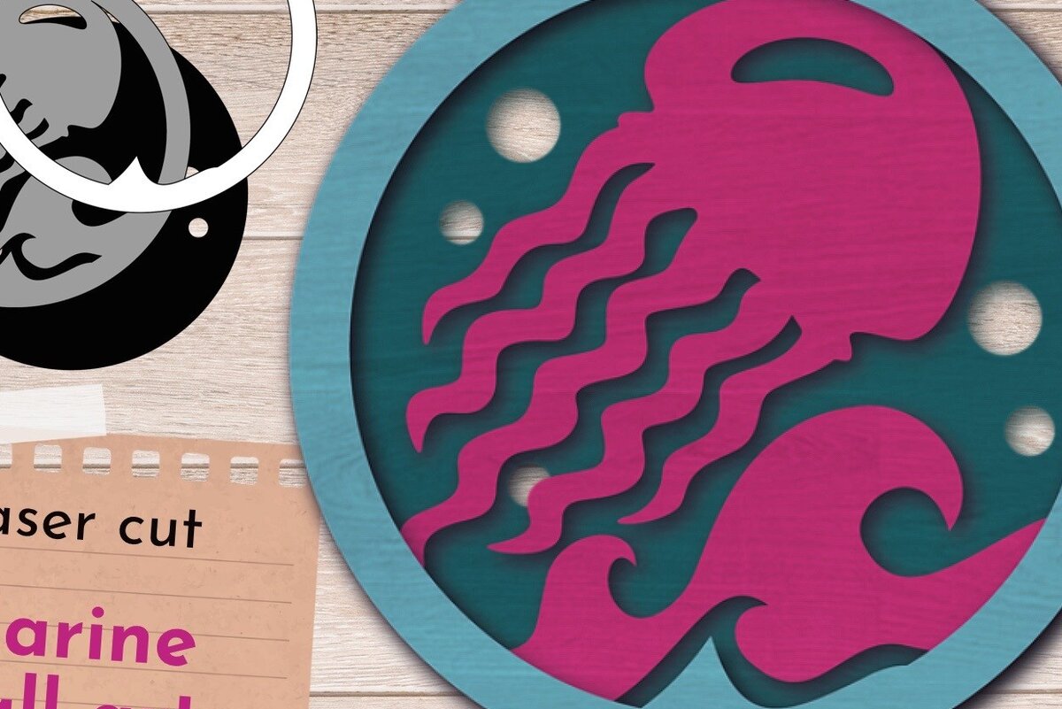 Intra απο ξύλο plywood 3mm-4mm πάχος 3D Layered Marine Wall Art, Jellyfish Δίασταση 40x40 cm INTRAFABR-70307212