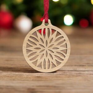 Intra απο ξύλο plywood 3mm-4mm πάχος – Χριστουγεννιάτικο μπιχλιμπίδι με λουλουδάτο μοτίβο 15x15 cm INTRAVECTRY-MY550046
