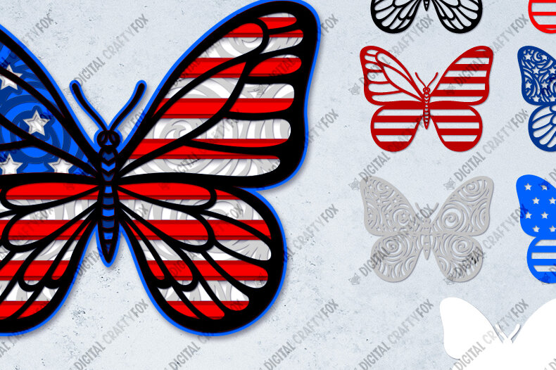 Intra απο ξύλο plywood 3mm-4mm πάχος 3D Patriotic Butterfly Papercut Δίασταση 3600x3600 cm INTRAFABR-13734483