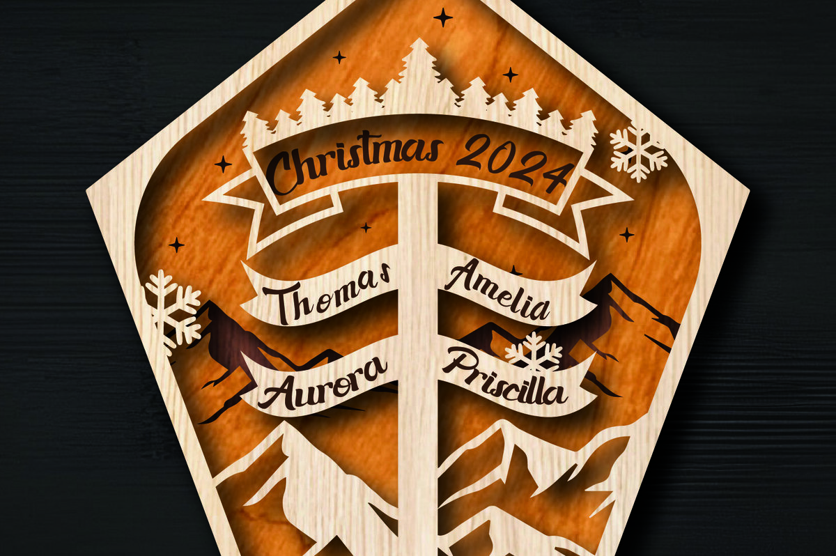 Intra απο ξύλο plywood 3mm-4mm πάχος Χριστουγεννιάτικο οικογενειακό στολίδι με λέιζερ Δίασταση 8x8 cm INTRAFABR-106400409