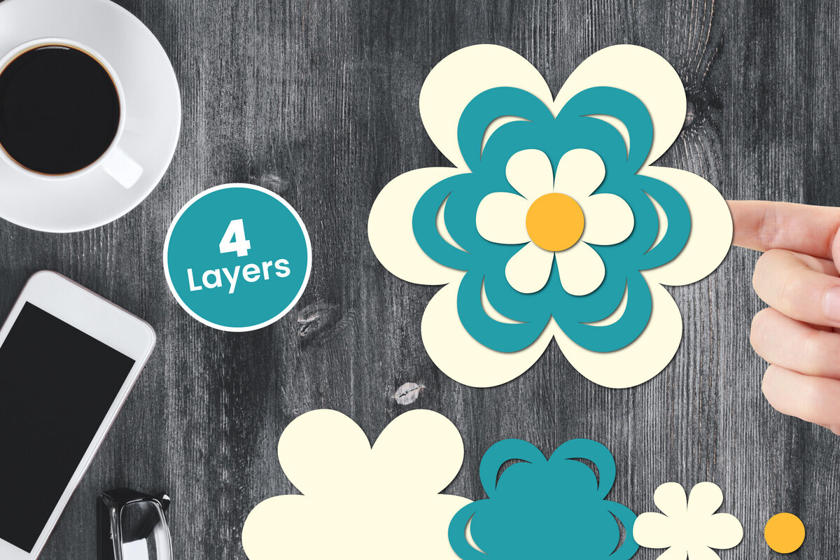 Intra απο ξύλο plywood 3mm-4mm πάχος Χαρτί λουλουδιών με 3D στρώσεις, Δίασταση 12x12 cm INTRAFABR-124567256