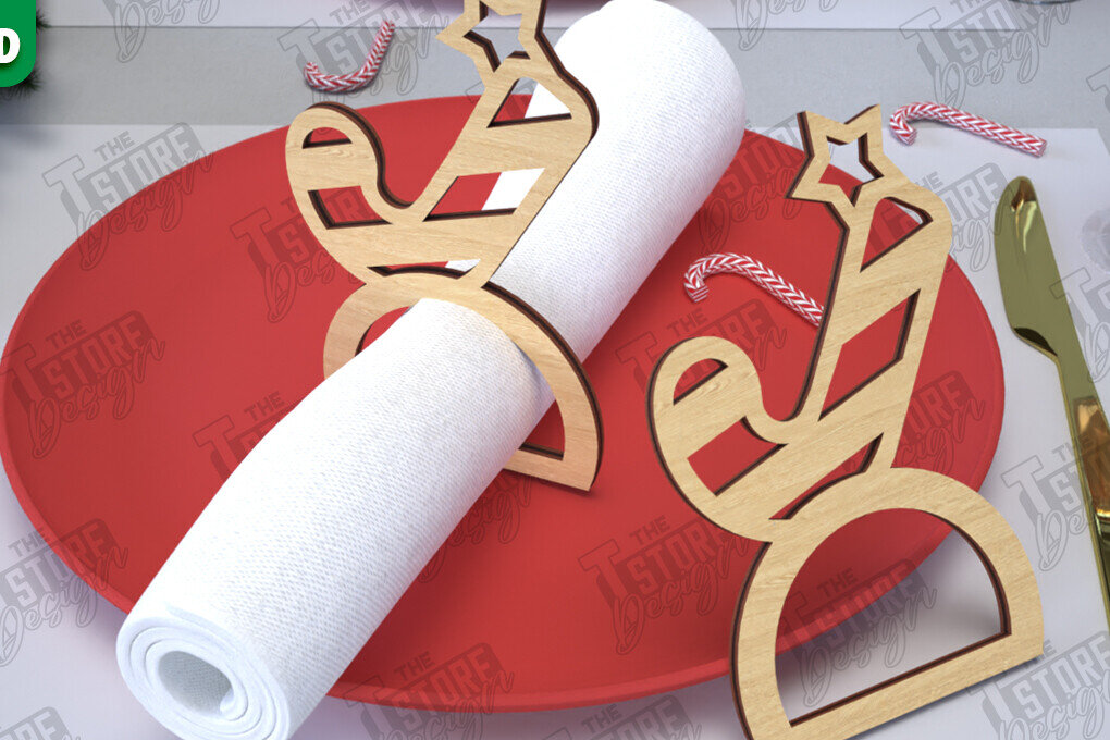 Intra απο ξύλο plywood 3mm-4mm πάχος Χριστουγεννιάτικα δαχτυλίδια χαρτοπετσέτας | Εορταστικό δείπνο Δίασταση 15x15 cm INTRAFABR-107814320