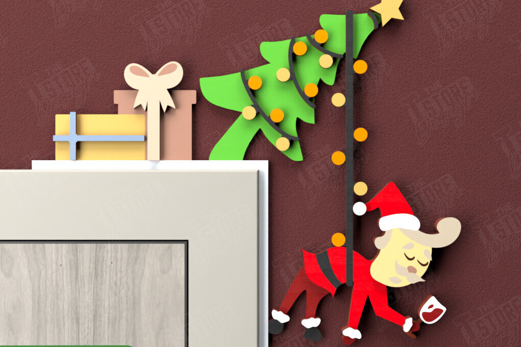 Intra απο ξύλο plywood 3mm-4mm πάχος Χριστουγεννιάτικες γωνίες πόρτας | Πινακίδα πόρτας | CNC Δίασταση 15x15 cm INTRAFABR-107424343
