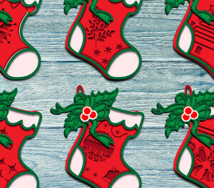 Intra απο ξύλο plywood 3mm-4mm πάχος Χριστουγεννιάτικη κάλτσα Σκουλαρίκια Σχέδιο Δίασταση 3x3 cm INTRAFABR-111318150