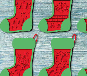 Intra απο ξύλο plywood 3mm-4mm πάχος Χριστουγεννιάτικη Κάλτσα Δίασταση 15x15 cm INTRAFABR-39170415