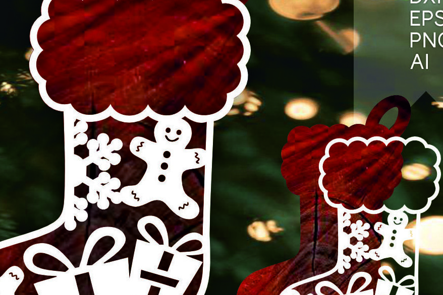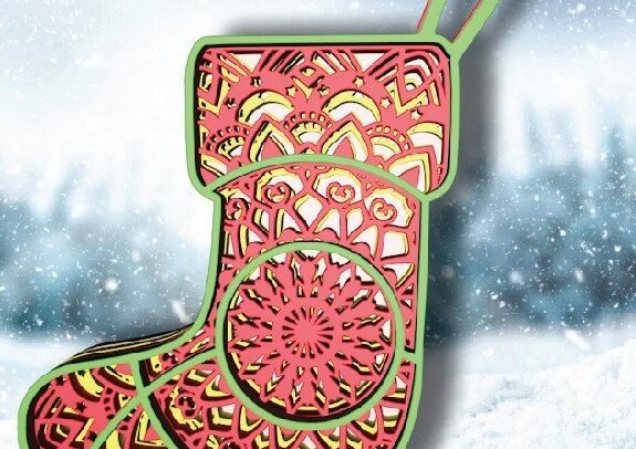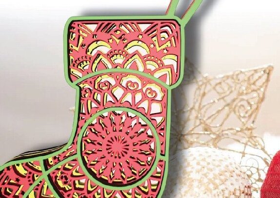 Intra απο ξύλο plywood 3mm-4mm πάχος Χριστουγεννιάτικη κάλτσα με λέιζερ. Δίασταση 4x4 cm INTRAFABR-107463398