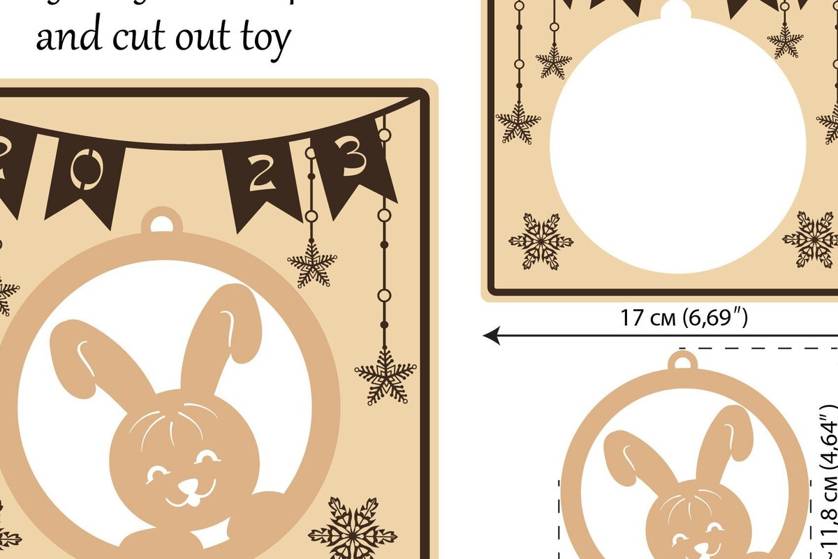 Intra απο ξύλο plywood 3mm-4mm πάχος Χριστουγεννιάτικη κάρτα χειροτεχνία/μπάλα με ένα λαγουδάκι Δίασταση 17x17 cm INTRAFABR-43250607