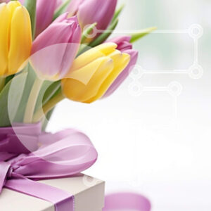 Intra Συλλεκτικό Ξύλινο Παζλ Plywood 4mm - Λευκό κουτί δώρου με πολύχρωμες τουλίπες μέσα Σε Ξύλινο Κουτί - Διαστάσεις: 10x10 cm – 25 κομμάτια