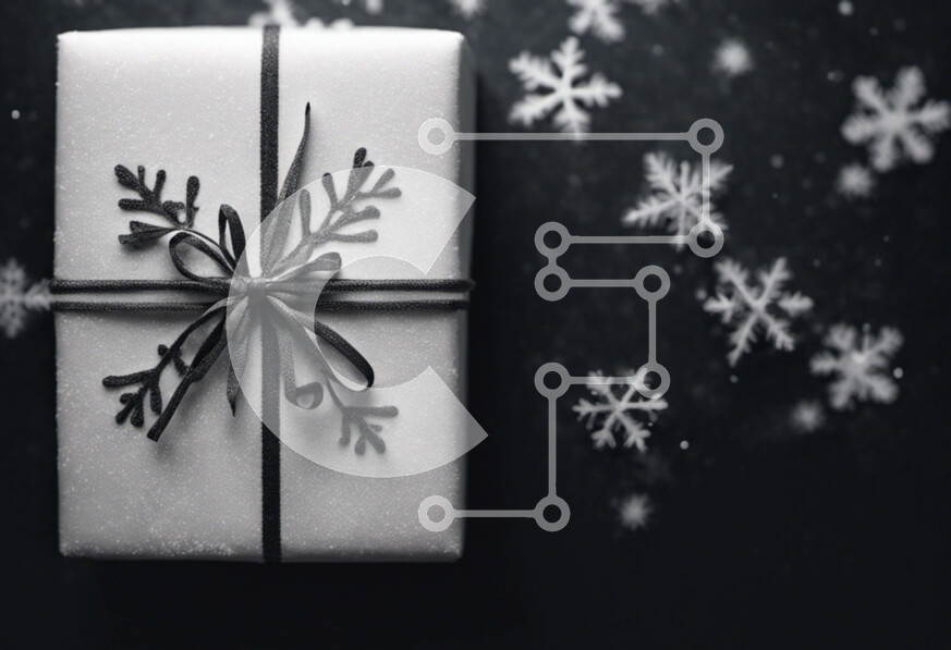 Intra Συλλεκτικό Ξύλινο Παζλ Plywood 4mm - Λευκό κουτί δώρου με μαύρη κορδέλα και νιφάδες χιονιού που πέφτουν Σε Ξύλινο Κουτί - Διαστάσεις: 10x10 cm – 25 κομμάτια