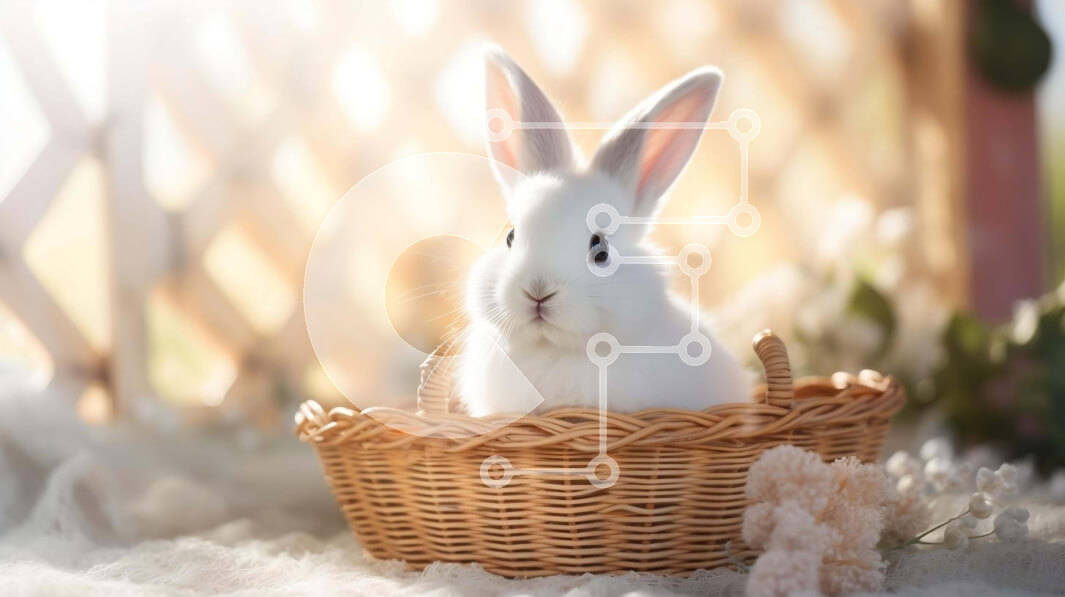 Intra Συλλεκτικό Ξύλινο Παζλ Plywood 4mm - Λευκό λαγουδάκι σε ψάθινο καλάθι με λουλούδια Σε Ξύλινο Κουτί - Διαστάσεις: 10x10 cm – 25 κομμάτια
