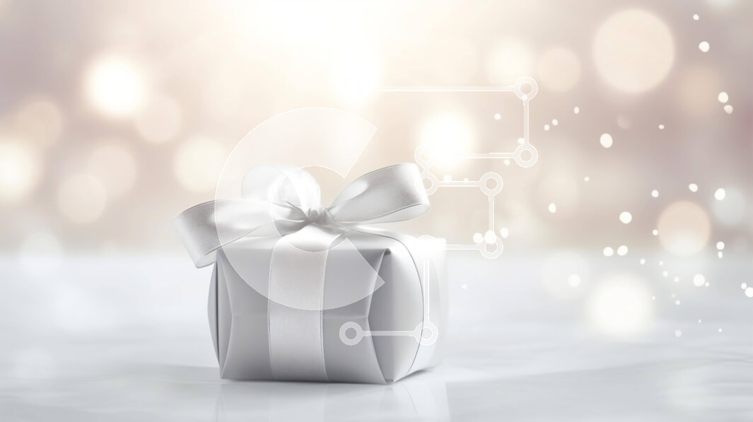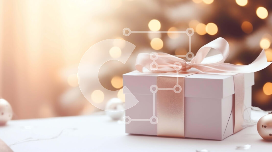 Intra Συλλεκτικό Ξύλινο Παζλ Plywood 4mm - Λευκό κουτί δώρου σε διακοσμημένο τραπέζι μπροστά από το χριστουγεννιάτικο δέντρο Σε Ξύλινο Κουτί - Διαστάσεις: 10x10 cm – 25 κομμάτια