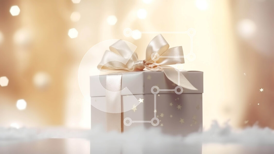 Intra Συλλεκτικό Ξύλινο Παζλ Plywood 4mm - Λευκό κουτί δώρου σε διακοσμημένο τραπέζι μπροστά από το χριστουγεννιάτικο δέντρο Σε Ξύλινο Κουτί - Διαστάσεις: 10x10 cm – 25 κομμάτια
