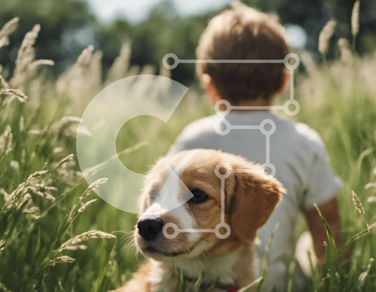 Intra Συλλεκτικό Ξύλινο Παζλ Plywood 4mm - Νεαρό αγόρι και σκύλος σε ένα χωράφι με ψηλό γρασίδι Σε Ξύλινο Κουτί - Διαστάσεις: 10x10 cm – 25 κομμάτια