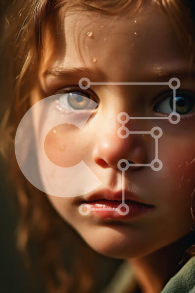 Intra Συλλεκτικό Ξύλινο Παζλ Plywood 4mm - Λυπημένο νεαρό κορίτσι με σγουρά καστανά μαλλιά και πράσινα μάτια που στέκονται μπροστά από ένα σκοτεινό φόντο Σε Ξύλινο Κουτί - Διαστάσεις Puzzle: 10x10 cm – 25 κομμάτια