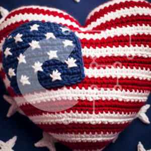 Intra Συλλεκτικό Ξύλινο Παζλ Plywood 4mm - Κουβέρτα με κροσέ σε σχήμα καρδιάς με μοτίβο αμερικανικής σημαίας και αστέρια Σε Ξύλινο Κουτί - Διαστάσεις Puzzle: 10x10 cm – 25 κομμάτια