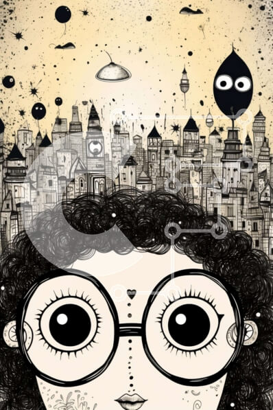 Intra Συλλεκτικό Ξύλινο Παζλ Plywood 4mm - Κορίτσι με γυαλιά και πολύχρωμα μπαλόνια στο αστικό τοπίο Σε Ξύλινο Κουτί - Διαστάσεις Puzzle: 10x10 cm – 25 κομμάτια
