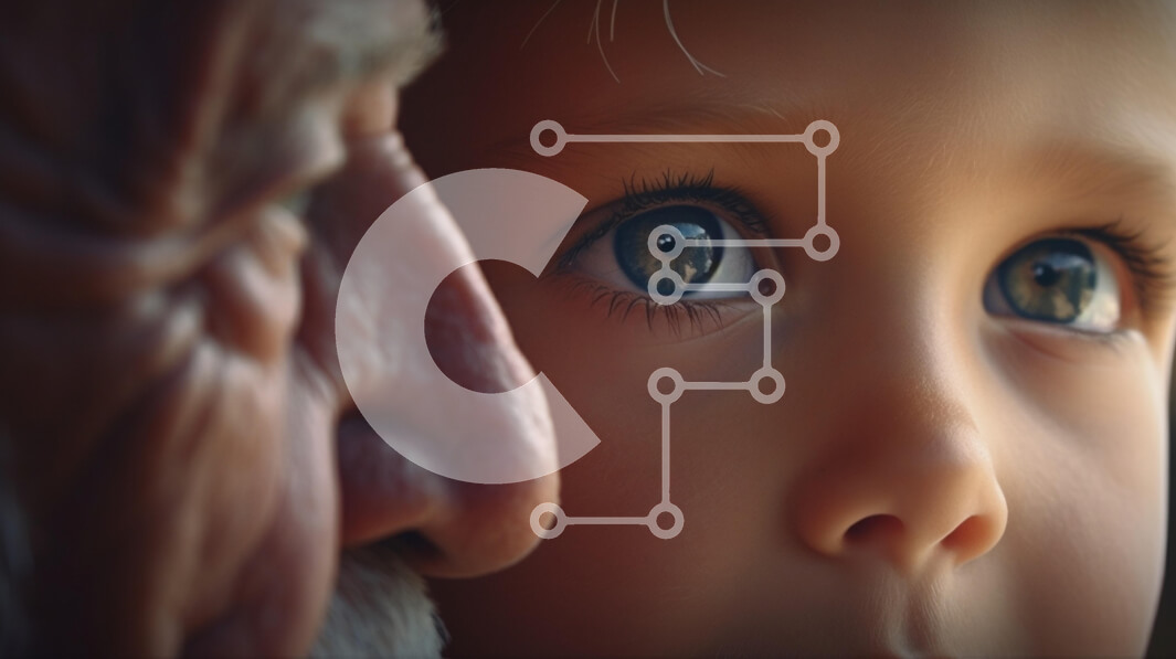 Intra Συλλεκτικό Ξύλινο Παζλ Plywood 4mm - Κοντινό πλάνο των ματιών ενός παιδιού με ένα ηλικιωμένο άτομο στο παρασκήνιο Σε Ξύλινο Κουτί - Διαστάσεις Puzzle: 10x10 cm – 25 κομμάτια