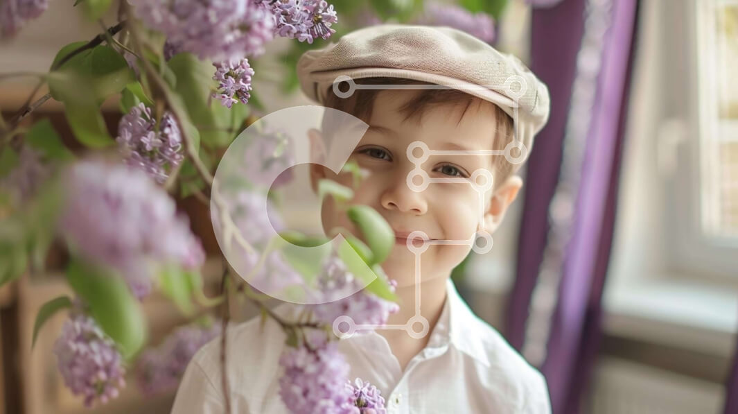 Intra Συλλεκτικό Ξύλινο Παζλ Plywood 4mm - Νεαρό αγόρι με μωβ λιλά λουλούδια Σε Ξύλινο Κουτί - Διαστάσεις Puzzle: 10x10 cm – 25 κομμάτια