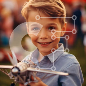 Intra Συλλεκτικό Ξύλινο Παζλ Plywood 4mm - Νεαρό αγόρι με παιχνίδι αεροπλάνο Σε Ξύλινο Κουτί - Διαστάσεις Puzzle: 10x10 cm – 25 κομμάτια
