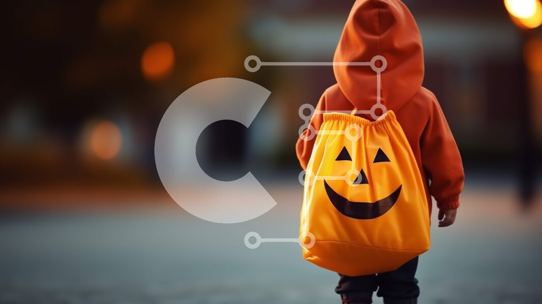Intra Συλλεκτικό Ξύλινο Παζλ Plywood 4mm - Νεαρό αγόρι με πορτοκαλί κουκούλα που κουβαλάει τσάντα κολοκύθας για το Halloween Σε Ξύλινο Κουτί - Διαστάσεις Puzzle: 10x10 cm – 25 κομμάτια