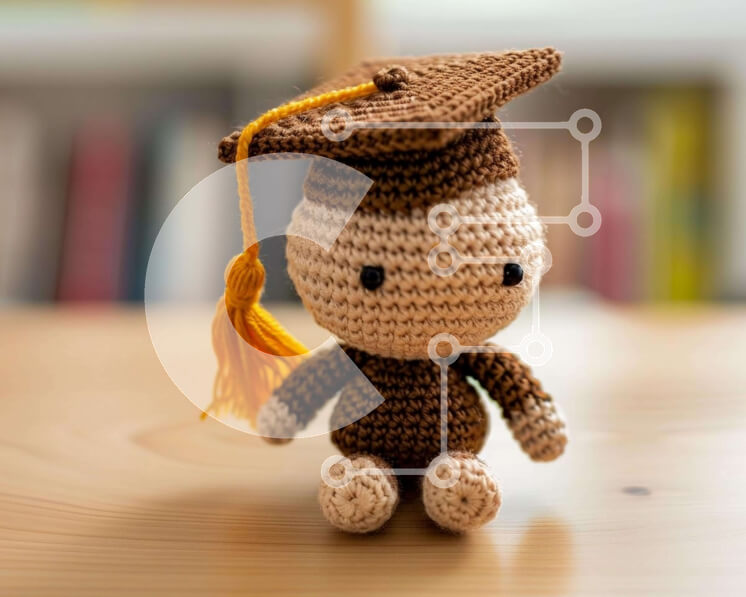 Intra Συλλεκτικό Ξύλινο Παζλ Plywood 4mm - Κούκλα με κροσέ με στολή αποφοίτησης Σε Ξύλινο Κουτί - Διαστάσεις: 10x10 cm – 25 κομμάτια