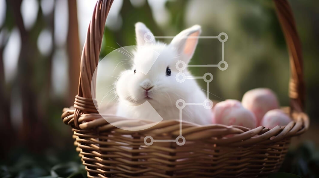Intra Συλλεκτικό Ξύλινο Παζλ Plywood 4mm - Λευκό λαγουδάκι με πασχαλινά αυγά στο καλάθι Σε Ξύλινο Κουτί - Διαστάσεις Puzzle: 10x10 cm – 25 κομμάτια