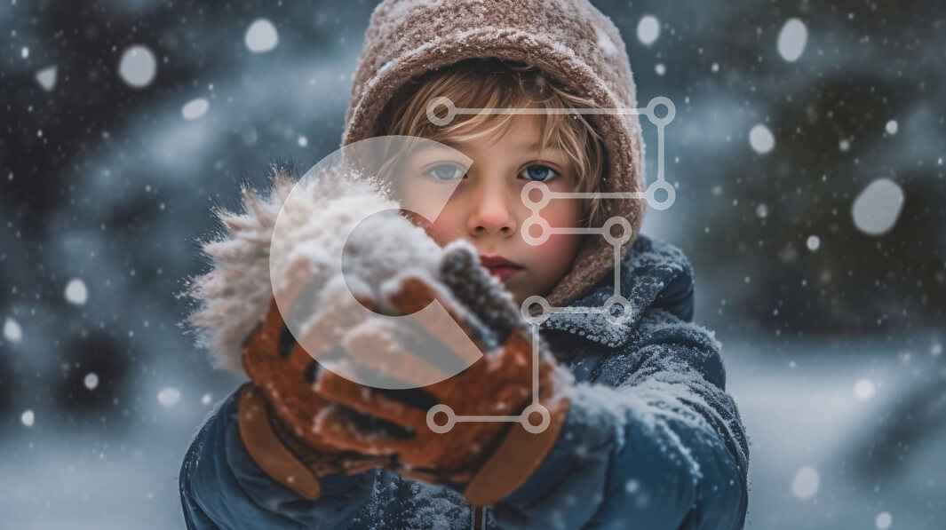Intra Συλλεκτικό Ξύλινο Παζλ Plywood 4mm - Νεαρό αγόρι με χειμερινό μπουφάν που κρατά μια χιονόμπαλα στο χιόνι Σε Ξύλινο Κουτί - Διαστάσεις Puzzle: 10x10 cm – 25 κομμάτια
