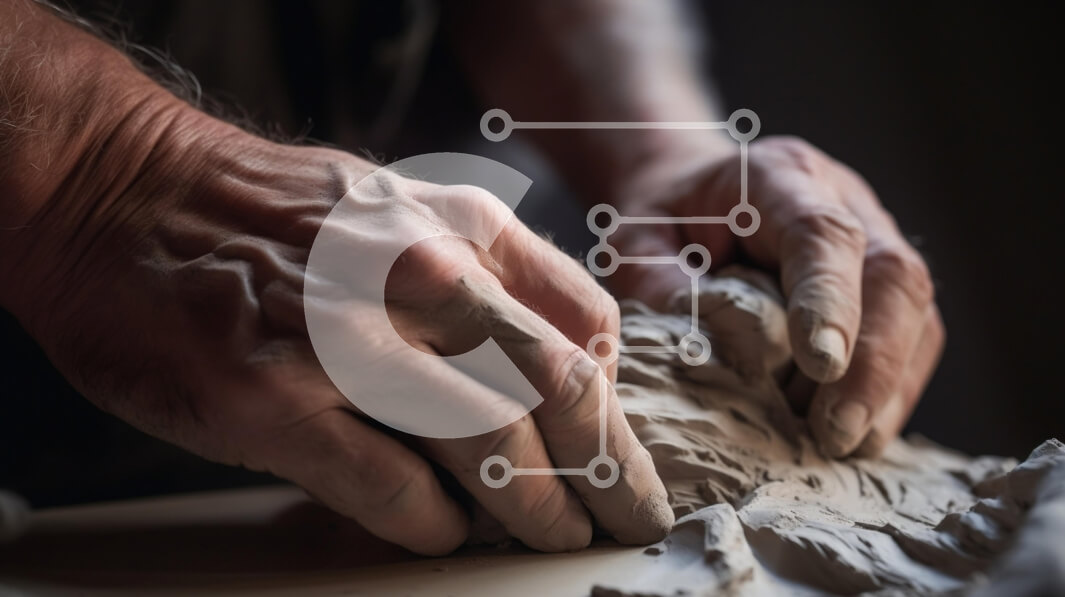 Intra Συλλεκτικό Ξύλινο Παζλ Plywood 4mm - Κοντινό πλάνο των χεριών που εργάζονται με τον πηλό Σε Ξύλινο Κουτί - Διαστάσεις Puzzle: 10x10 cm – 25 κομμάτια
