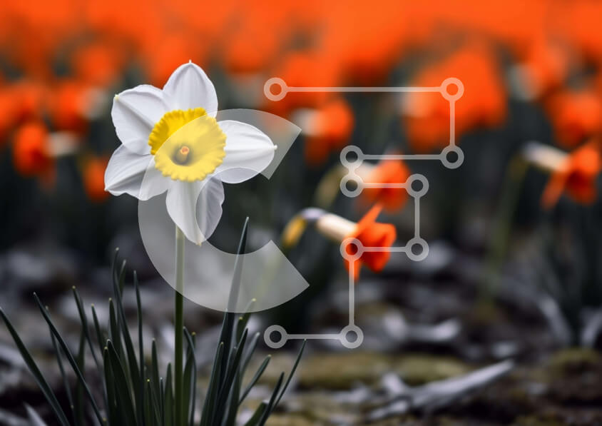 Intra Συλλεκτικό Ξύλινο Παζλ Plywood 4mm - Μονό λευκό και κίτρινο ασφόδελο σε πορτοκαλί άνθος χωράφι Σε Ξύλινο Κουτί - Διαστάσεις: 10x10 cm – 25 κομμάτια