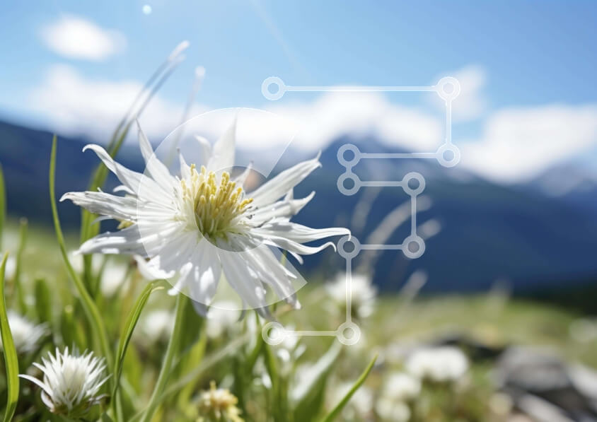Intra Συλλεκτικό Ξύλινο Παζλ Plywood 4mm - Λευκό λουλούδι στο ορεινό τοπίο Σε Ξύλινο Κουτί - Διαστάσεις: 10x10 cm – 25 κομμάτια