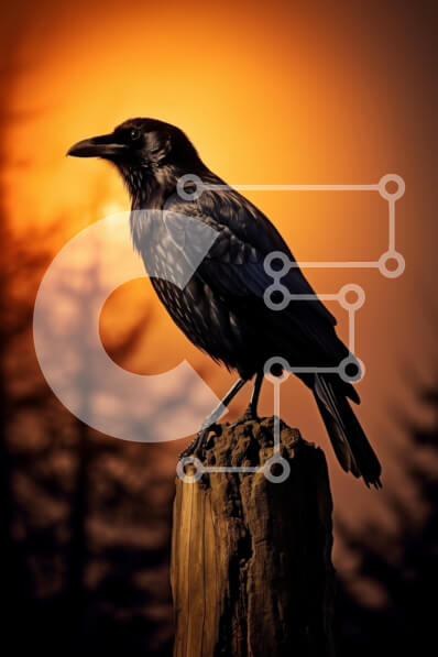 Intra Συλλεκτικό Ξύλινο Παζλ Plywood 4mm - Κοράκι στο ηλιοβασίλεμα σε ένα δάσος Σε Ξύλινο Κουτί - Διαστάσεις: 10x10 cm – 25 κομμάτια