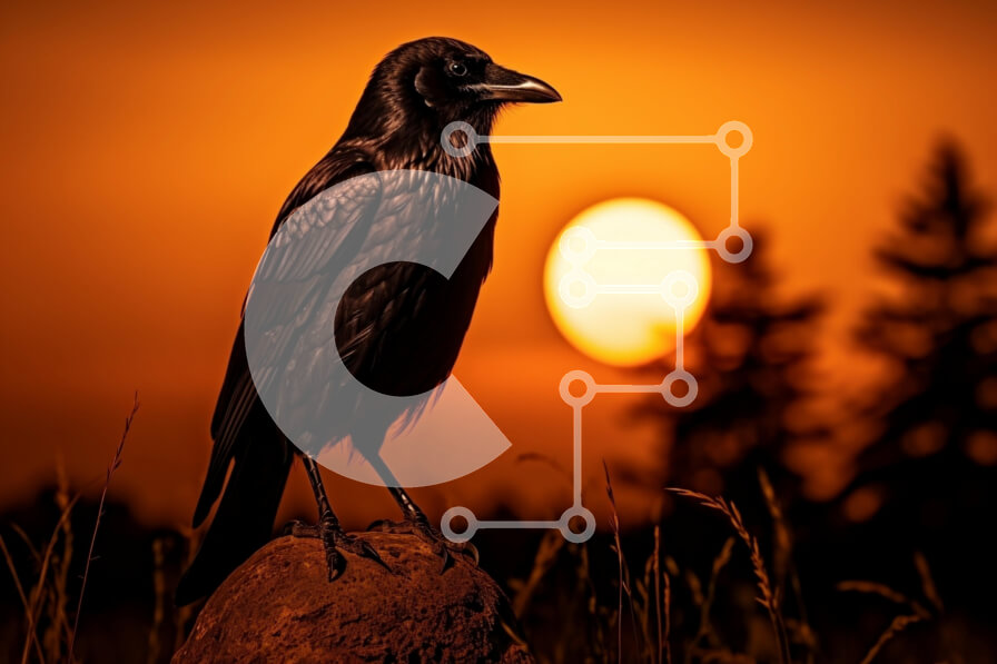 Intra Συλλεκτικό Ξύλινο Παζλ Plywood 4mm - Κοράκι στο ηλιοβασίλεμα Σε Ξύλινο Κουτί - Διαστάσεις: 10x10 cm – 25 κομμάτια