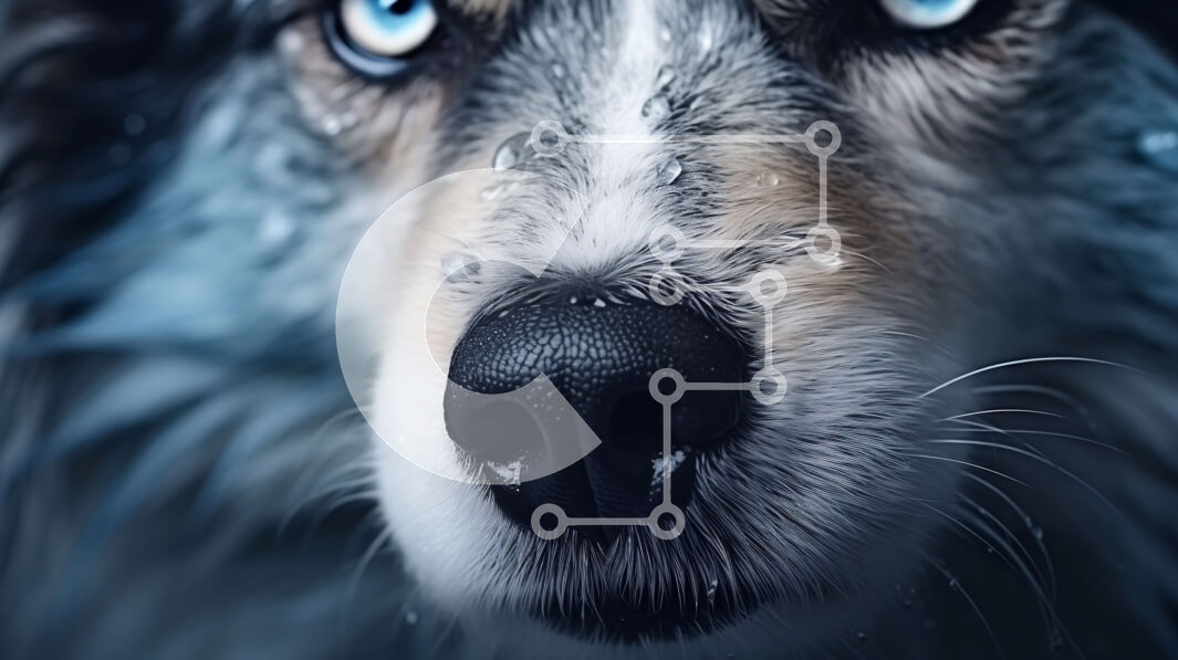 Intra Συλλεκτικό Ξύλινο Παζλ Plywood 4mm - Κοντινό πλάνο ενός σκύλου με μπλε μάτια Σε Ξύλινο Κουτί - Διαστάσεις: 10x10 cm – 25 κομμάτια