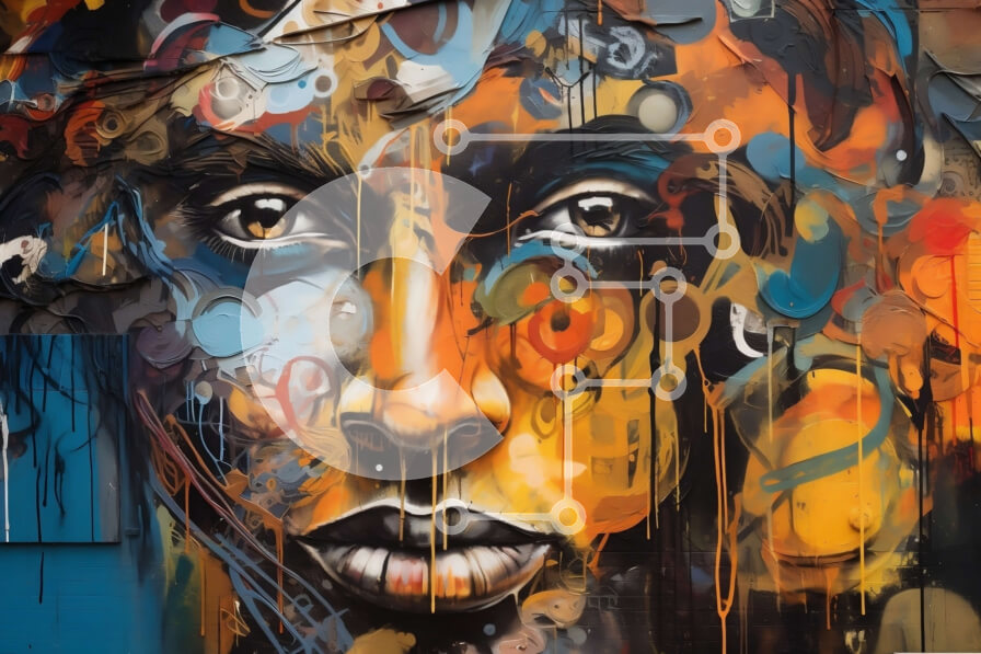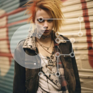 Intra Συλλεκτικό Ξύλινο Παζλ Plywood 4mm - Μοντέρνα γυναίκα με πορτοκαλί μαλλιά μπροστά από τον τοίχο γκράφιτι Σε Ξύλινο Κουτί - Διαστάσεις Puzzle: 10x10 cm – 25 κομμάτια