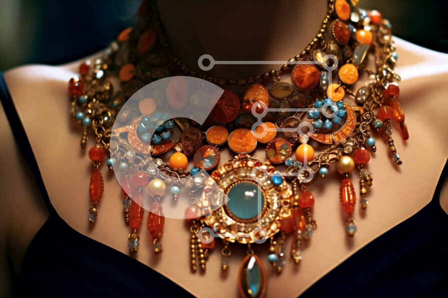 Intra Συλλεκτικό Ξύλινο Παζλ Plywood 4mm - Μοντέρνα γυναίκα με μαύρο φόρεμα με πορτοκαλί και μπλε κοσμήματα με χάντρες Σε Ξύλινο Κουτί - Διαστάσεις Puzzle: 10x10 cm – 25 κομμάτια