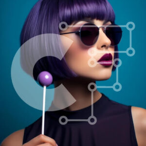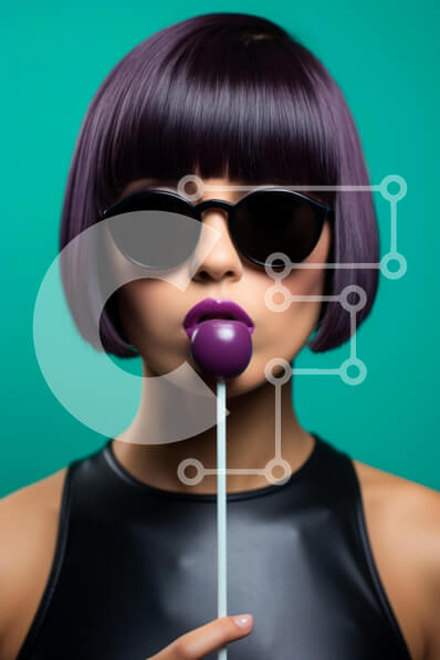 Intra Συλλεκτικό Ξύλινο Παζλ Plywood 4mm - Μοντέρνα γυναίκα με μωβ μαλλιά και γλειφιτζούρι Σε Ξύλινο Κουτί - Διαστάσεις Puzzle: 10x10 cm – 25 κομμάτια
