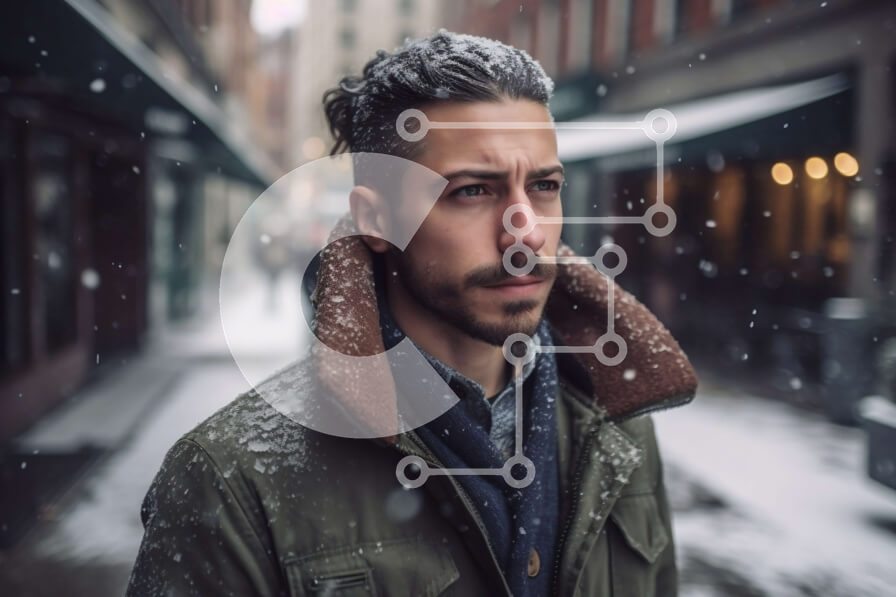 Intra Συλλεκτικό Ξύλινο Παζλ Plywood 4mm - Κομψός άνδρας με πράσινο σακάκι που στέκεται στη Snowy Street Σε Ξύλινο Κουτί - Διαστάσεις Puzzle: 10x10 cm – 25 κομμάτια