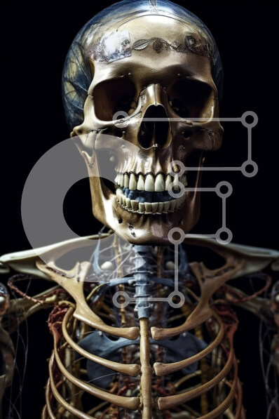 Intra Συλλεκτικό Ξύλινο Παζλ Plywood 4mm - Λεπτομερής εικόνα ενός ανθρώπινου σκελετού σε μαύρο και άσπρο Σε Ξύλινο Κουτί - Διαστάσεις Puzzle: 10x10 cm – 25 κομμάτια