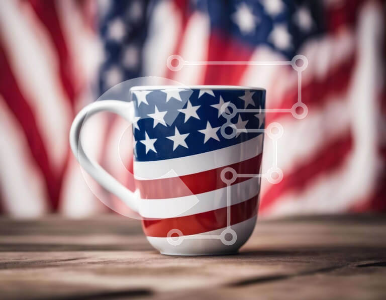 Intra Συλλεκτικό Ξύλινο Παζλ Plywood 4mm - Κούπα καφέ αμερικανικής σημαίας σε ξύλινο φόντο Σε Ξύλινο Κουτί - Διαστάσεις: 10x10 cm – 25 κομμάτια