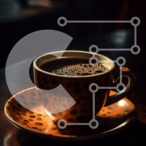 Intra Συλλεκτικό Ξύλινο Παζλ Plywood 4mm - Κούπα καφέ Leopard Print σε ξύλινο τραπέζι με θέα στον ορίζοντα της πόλης τη νύχτα Σε Ξύλινο Κουτί - Διαστάσεις: 10x10 cm – 25 κομμάτια