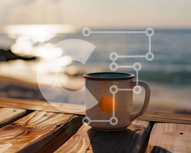 Intra Συλλεκτικό Ξύλινο Παζλ Plywood 4mm - Κούπα καφέ σε ξύλινο τραπέζι δίπλα στον ωκεανό Σε Ξύλινο Κουτί - Διαστάσεις: 10x10 cm – 25 κομμάτια