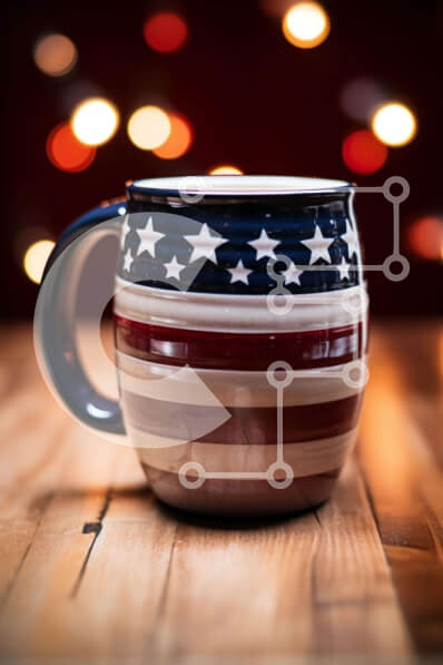 Intra Συλλεκτικό Ξύλινο Παζλ Plywood 4mm - Κούπα καφέ με θέμα την αμερικανική σημαία σε ξύλινο τραπέζι με αστέρια Σε Ξύλινο Κουτί - Διαστάσεις Puzzle: 10x10 cm – 25 κομμάτια