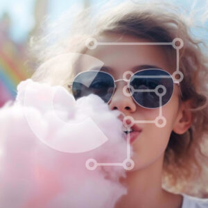 Intra Συλλεκτικό Ξύλινο Παζλ Plywood 4mm - Νεαρό κορίτσι που φυσάει ροζ μαλλί της γριάς στο λούνα παρκ ή το καρναβάλι Σε Ξύλινο Κουτί - Διαστάσεις Puzzle: 10x10 cm – 25 κομμάτια