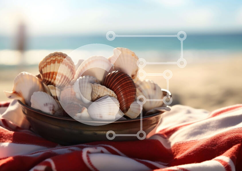 Intra Συλλεκτικό Ξύλινο Παζλ Plywood 4mm - Κοχύλια στο ασημένιο μπολ στην παραλία Σε Ξύλινο Κουτί - Διαστάσεις: 10x10 cm – 25 κομμάτια