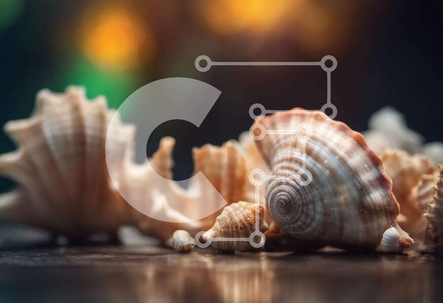 Intra Συλλεκτικό Ξύλινο Παζλ Plywood 4mm - Κοχύλια σε μια σκοτεινή επιφάνεια Σε Ξύλινο Κουτί - Διαστάσεις: 10x10 cm – 25 κομμάτια