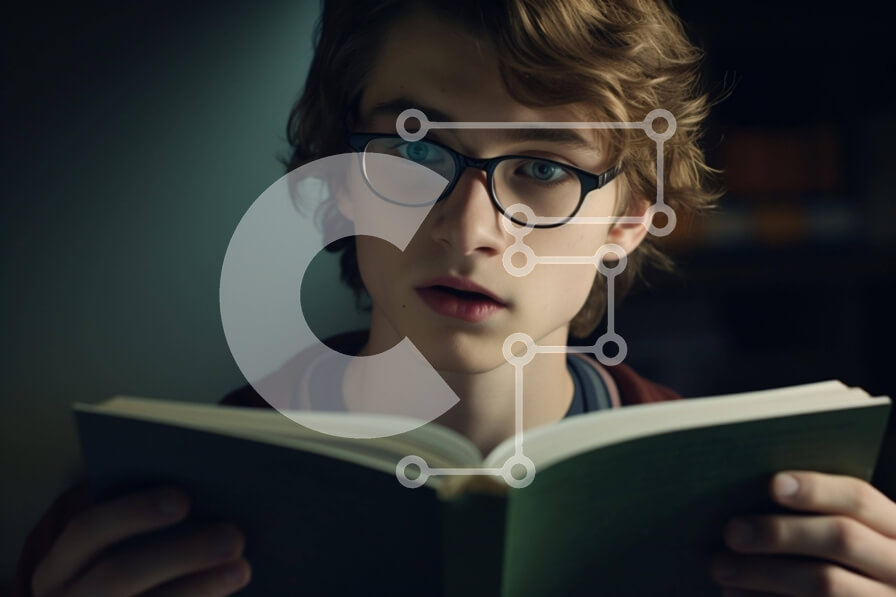 Intra Συλλεκτικό Ξύλινο Παζλ Plywood 4mm - Νεαρός άνδρας που διαβάζει ένα βιβλίο σε ένα στοχαστικό περιβάλλον Σε Ξύλινο Κουτί - Διαστάσεις Puzzle: 10x10 cm – 25 κομμάτια