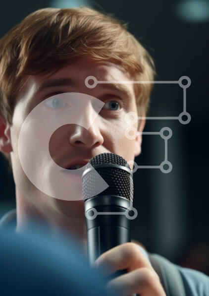 Intra Συλλεκτικό Ξύλινο Παζλ Plywood 4mm - Νεαρός άνδρας που μιλά σε ένα μικρόφωνο Σε Ξύλινο Κουτί - Διαστάσεις Puzzle: 10x10 cm – 25 κομμάτια