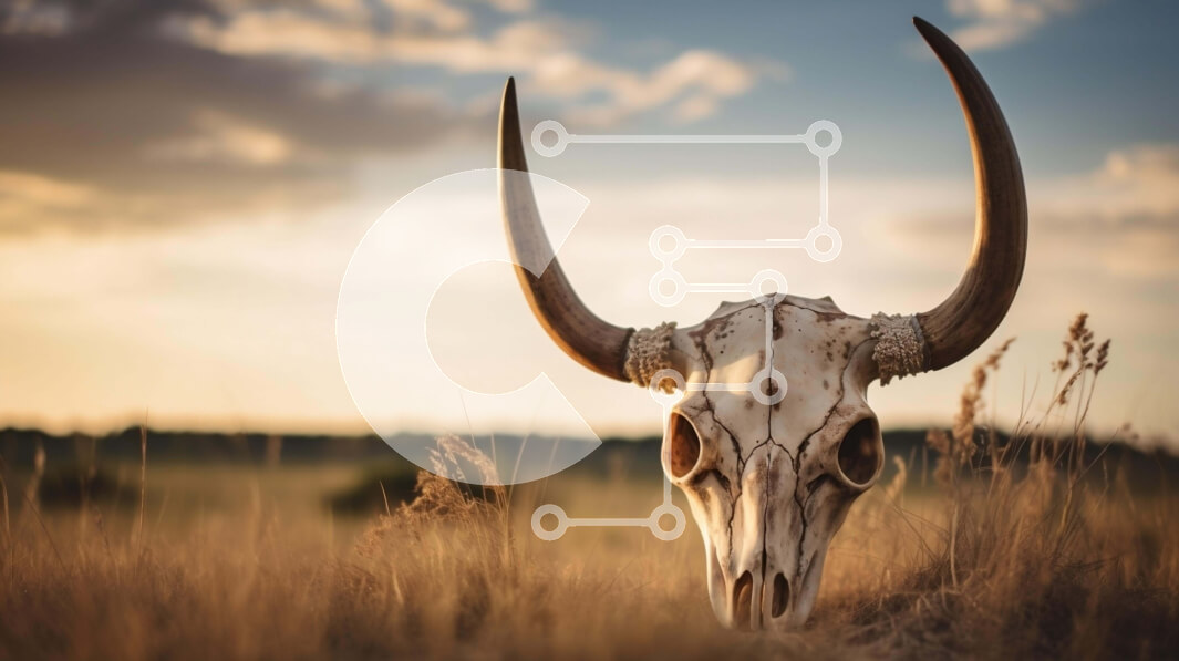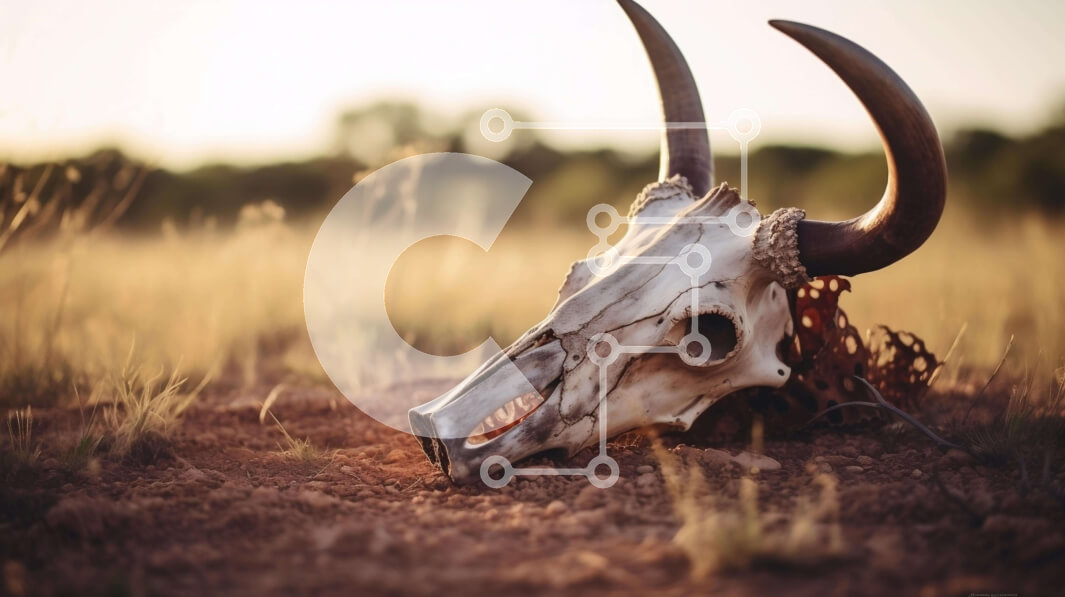 Intra Συλλεκτικό Ξύλινο Παζλ Plywood 4mm - Κρανίο ταύρου στο χορτάρι στο ηλιοβασίλεμα Σε Ξύλινο Κουτί - Διαστάσεις: 10x10 cm – 25 κομμάτια