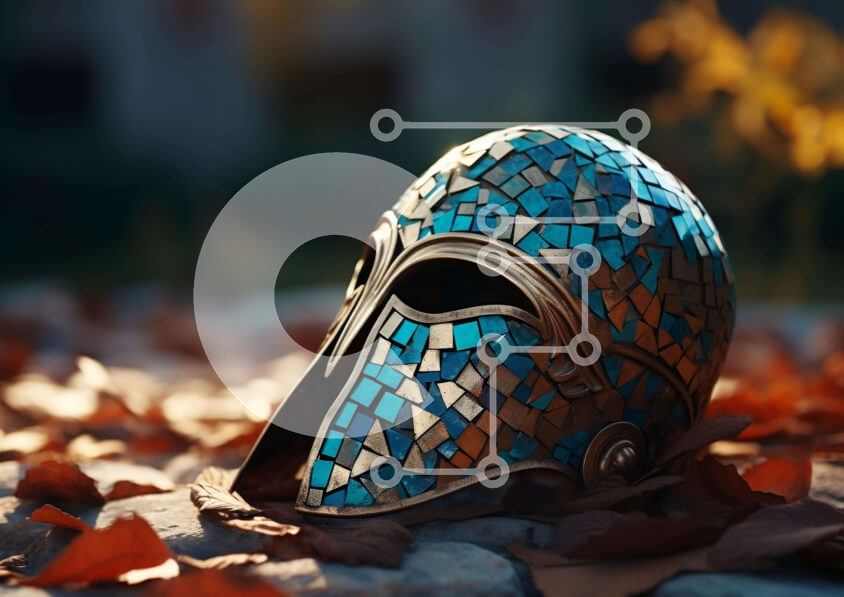 Intra Συλλεκτικό Ξύλινο Παζλ Plywood 4mm - Κράνος από πλακάκια μωσαϊκού σε έκθεση σε Πινακοθήκη ή Μουσείο Σε Ξύλινο Κουτί - Διαστάσεις Puzzle: 10x10 cm – 25 κομμάτια