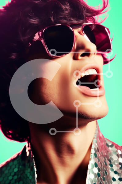 Intra Συλλεκτικό Ξύλινο Παζλ Plywood 4mm - Νεαρός άνδρας που τραγουδά με γυαλιά ηλίου και σγουρά μαλλιά Σε Ξύλινο Κουτί - Διαστάσεις Puzzle: 10x10 cm – 25 κομμάτια